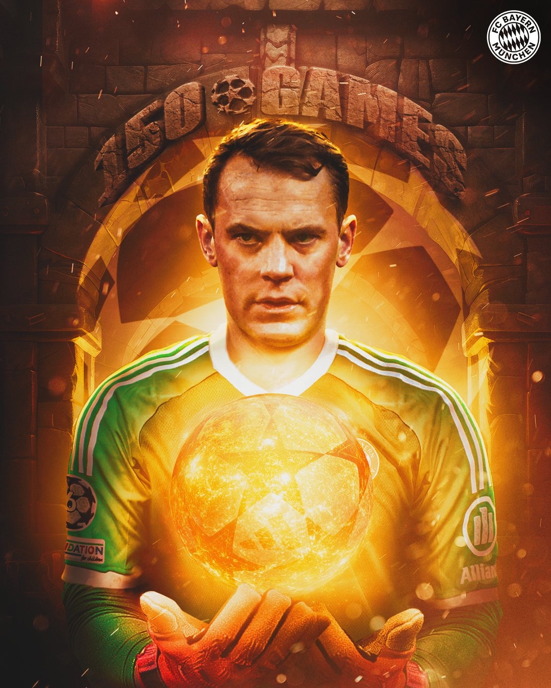 3月6日訊 本輪歐冠拜仁對陣勒沃庫森,諾伊爾首發出戰。本場比賽也是諾伊爾歐冠第150次出場里程碑之戰,拜仁官方也曬出海報為其紀念。