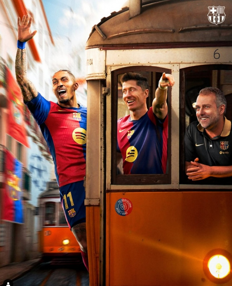 3月5日訊 本輪歐冠巴薩將在客場迎戰(zhàn)本菲卡,球隊(duì)官方也發(fā)布海報(bào)為本場預(yù)熱。海報(bào)中弗里克、萊萬以及拉菲尼亞坐在前往里斯本的列車上,球隊(duì)官方社媒也配文寫道:“我們重回里斯本!”在雙方本賽季歐冠聯(lián)賽階段的交