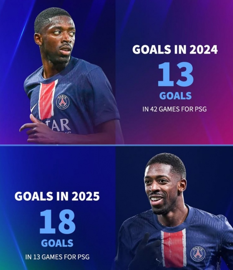 能否繼續(xù)破門?登貝萊去年為巴黎42場13球,今年13場已18球