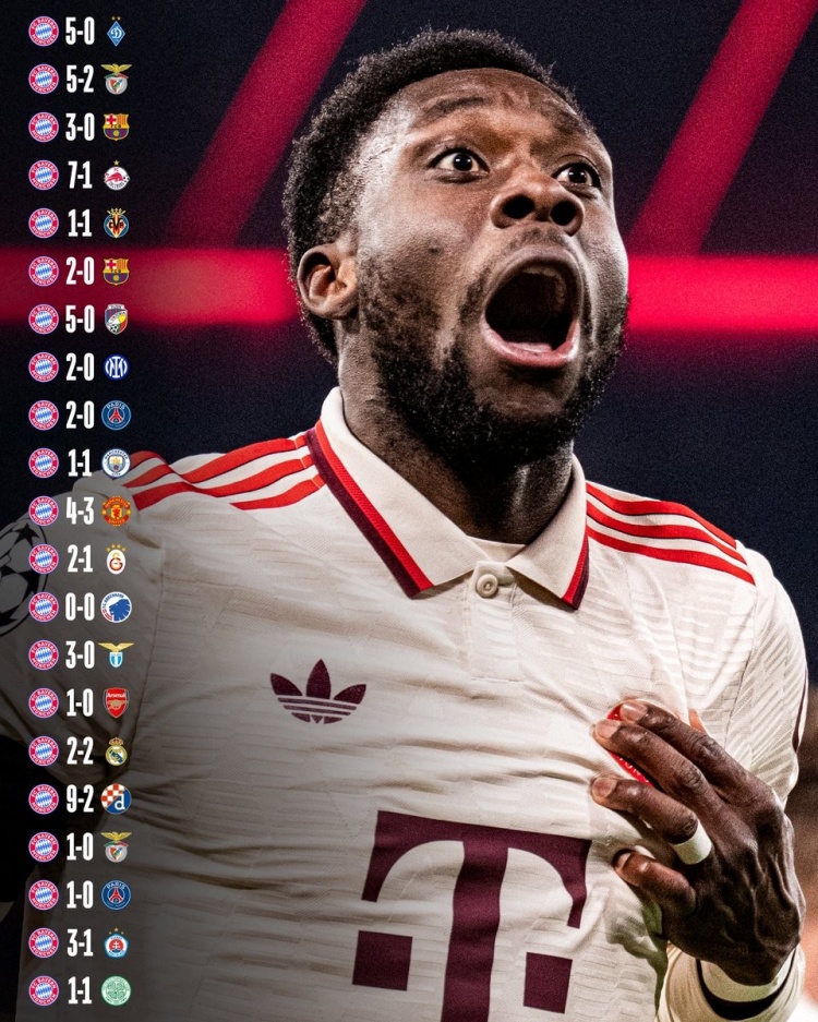 拜仁官推曬主場歐冠戰(zhàn)績:近4年連續(xù)21場不敗,豪取16勝5平