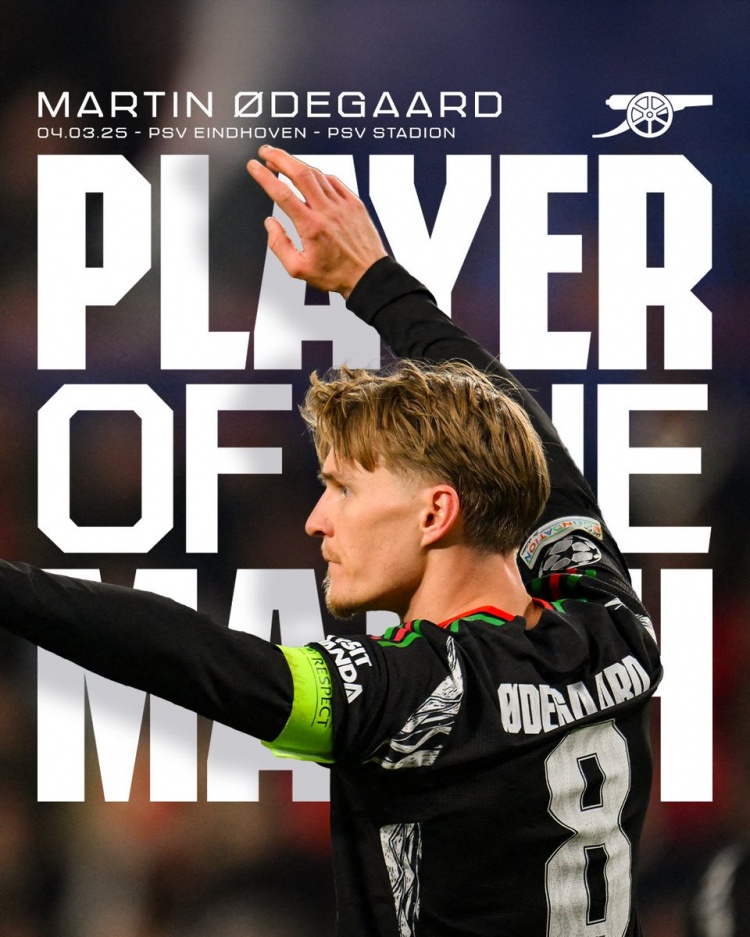 3月5日訊 北京時(shí)間今天凌晨進(jìn)行的歐冠1/8決賽首回合,槍手客場7-1擊敗埃因霍溫,厄德高此役貢獻(xiàn)2射1傳。賽后,他獲得了球迷最多的投票,當(dāng)選此役隊(duì)內(nèi)最佳球員。除了2個(gè)進(jìn)球以及1記助攻,厄德高還有3次