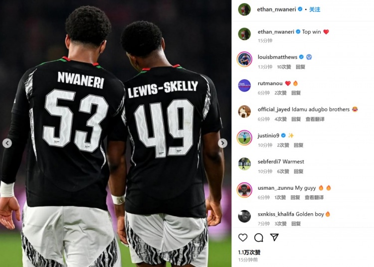 3月5日訊 阿森納在本輪歐冠客場7-1血洗埃因霍溫,兩位小將恩瓦內里和斯凱利表現出色。第21分鐘,阿森納禁區左側展開攻勢,斯凱利低平球傳中被擋了一下,前點恩瓦內里直接左腳抽射破門。兩人也都在社媒曬出了
