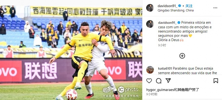 3月5日訊 中超第二輪比賽,青島西海岸主場2-0擊敗武漢三鎮,取得了新賽季首勝。賽后,戴維森更新社媒,談到了獲勝的感受。本場比賽戴維森打滿全場,作為西海岸核心球員的他,全場比賽3次射門1次射正,4次完