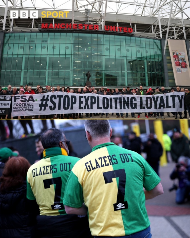 3月3日訊 足總杯1/8決賽,曼聯主場對陣富勒姆的比賽即將打響。賽前,兩隊球迷聯合抗議英超票價上漲。比賽開始前,兩隊球迷在老特拉福德球場前進行了聯合抗議活動,拉出了寫有“停止剝削忠誠”的橫幅。此外,也