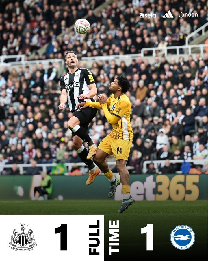 03月03日訊 足總杯1/8決賽,紐卡斯爾vs布萊頓。加時賽第24分鐘,維爾貝克挑射破門,場上比分紐卡斯爾1-2布萊頓。