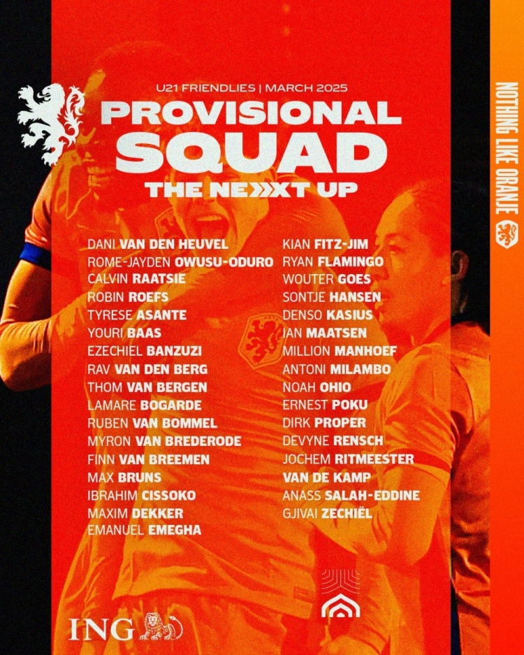 3月2日訊 荷蘭足協公布荷蘭U21隊最新一期名單,21歲華裔中場天樂繼續入選。天樂現年21歲,這位華裔中場本賽季為阿賈克斯出戰36次打進6球,德轉身價為500萬歐元。在荷蘭U21隊最新一期名單中,天樂