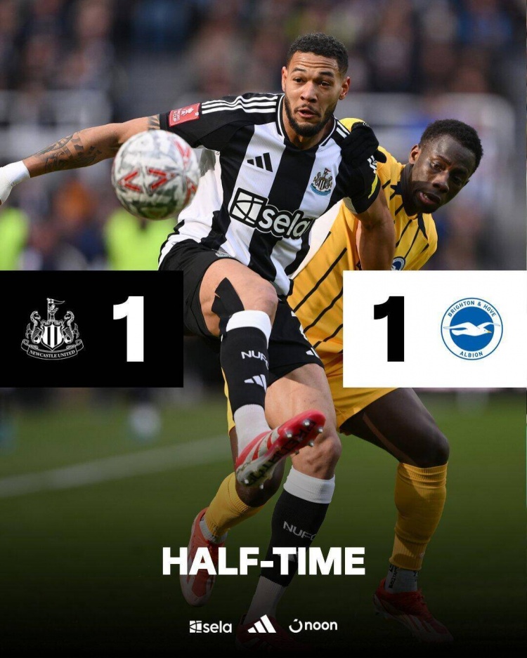 03月02日訊 足總杯1/8決賽,紐卡斯爾vs布萊頓。比賽第44分鐘,佩德羅直塞打穿紐卡防線,明特單刀推射破門,場上比分紐卡斯爾1-1布萊頓。