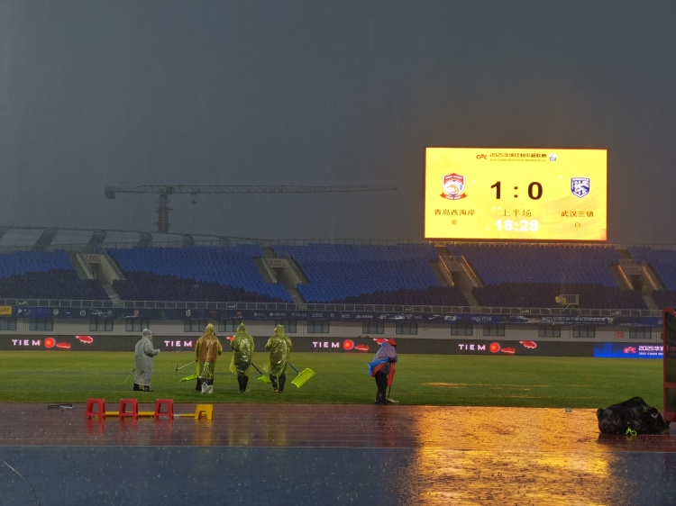 比賽延期!青島西海岸vs武漢三鎮(zhèn)進(jìn)行至18分鐘,因天氣中斷30分鐘