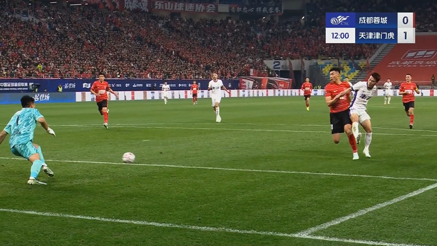 半場-胡荷韜助攻韋世豪頭球吊射破門周定洋染紅 蓉城暫1-1津門虎