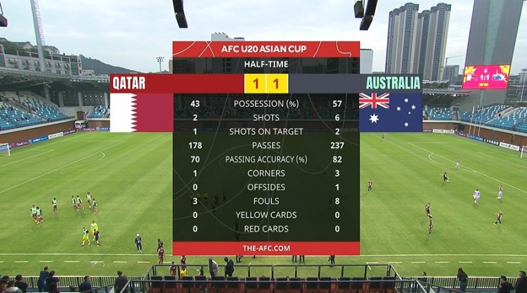 國青同組對(duì)手!半場(chǎng)-卡塔爾U20暫1-1澳大利亞U20