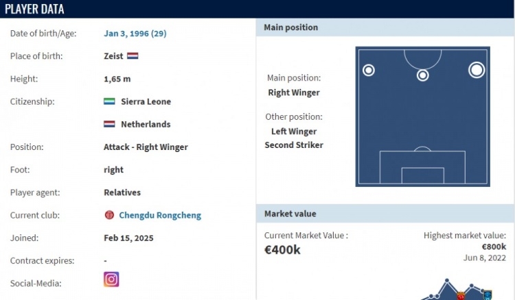 2月15日訊 《轉(zhuǎn)會(huì)市場(chǎng)》顯示,前南通支云外援卡隆正式加盟成都蓉城,轉(zhuǎn)會(huì)費(fèi)為30.2萬歐元,約合人民幣230萬元。卡隆2022賽季來到中國踢球,加盟上海海港,兩個(gè)賽季共代表海港出戰(zhàn)45場(chǎng),貢獻(xiàn)了7個(gè)進(jìn)