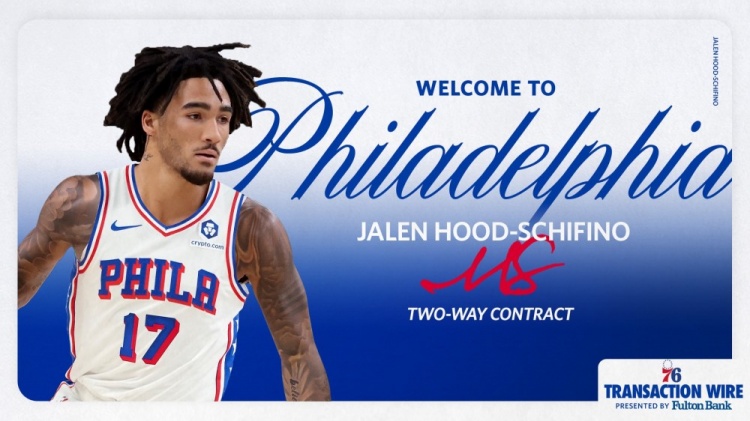 3月2日訊 今日76人官方宣布,球隊正式與席菲諾簽下一份雙向合同,根據球隊政策,合同細節暫未公布。此外,球隊裁掉了雙向合同球員大衛-羅迪。席菲諾在23年17順位被湖人選中,生涯代表湖人出戰23場比賽,