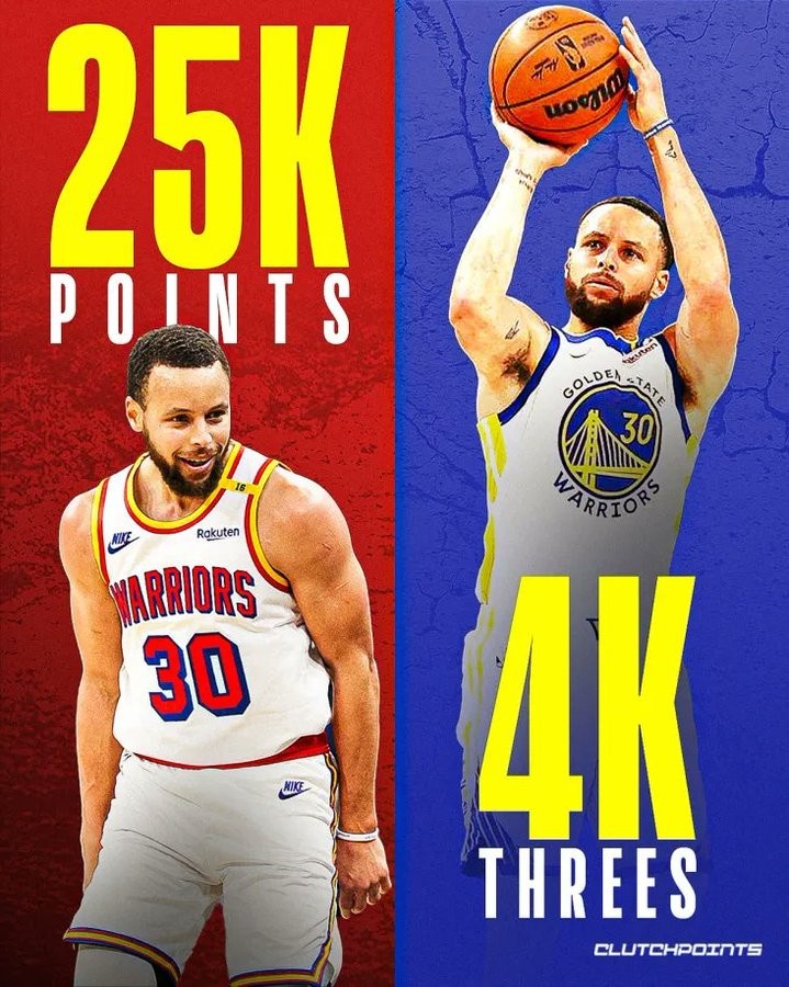 在3月9日對(duì)陣活塞的比賽中,庫(kù)里達(dá)成25000分里程碑;