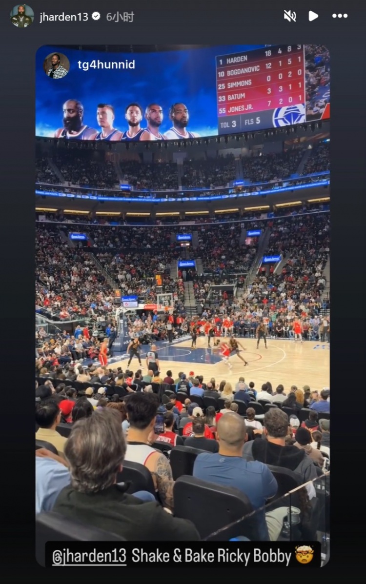 比賽中,哈登雙變向直接晃暈?zāi)祭铮@艷全場(chǎng);賽后,哈登也轉(zhuǎn)發(fā)了這一精彩瞬間。