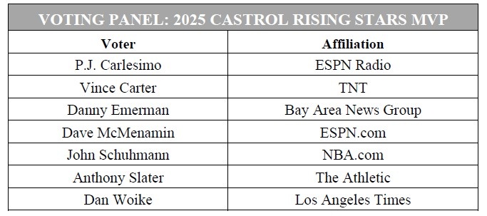 據NBA官方報道,在MVP評選中,卡斯爾獲得了媒體評審團的全部七張選票。