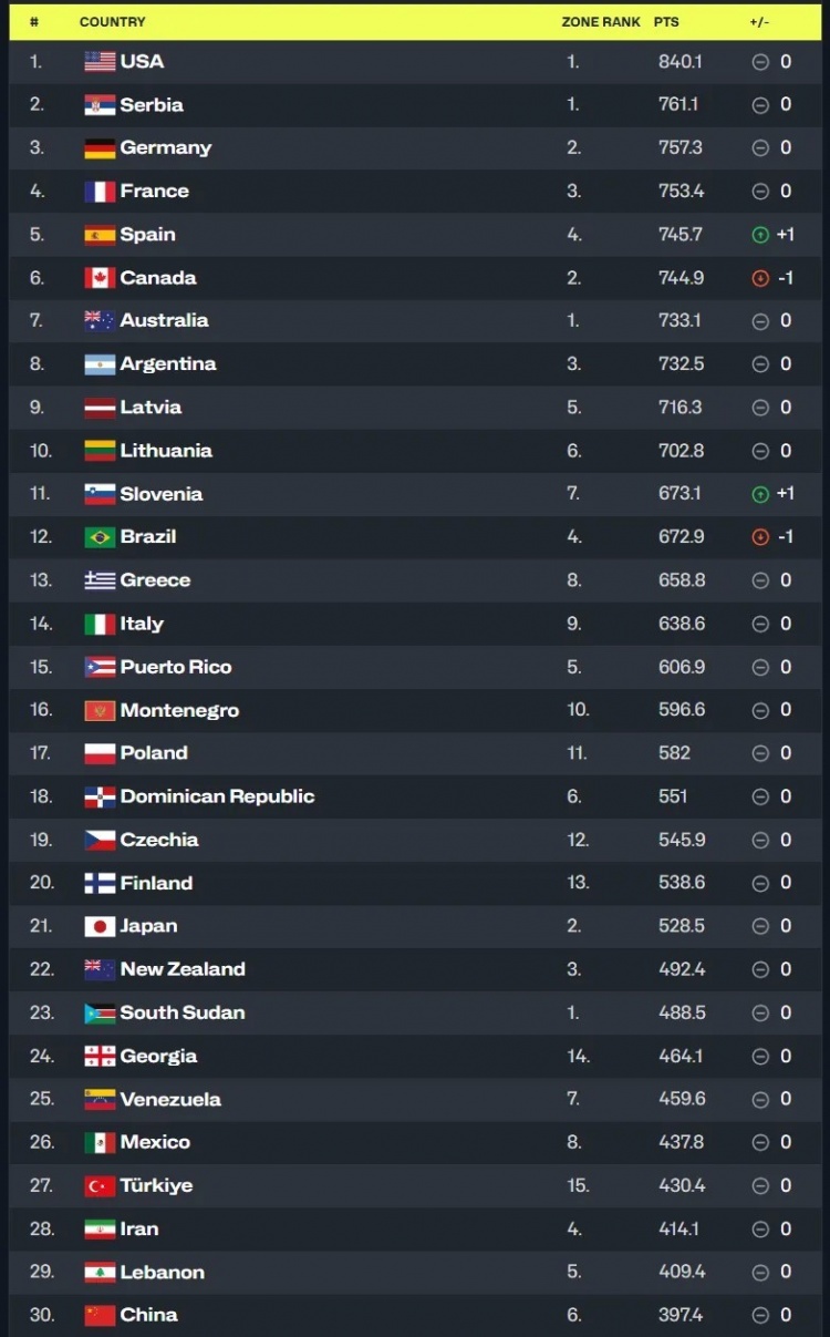 相對而言,國際籃聯FIBA對于世界排名的計算就不太被關注了,不僅在于它的算法更為繁瑣和復雜,更在于一直以來都頗有幾分神秘色彩。