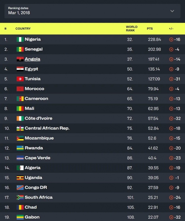 這里可以看到,中國隊俯沖掉了14名,同樣俯沖的還有非洲區第一第二尼日利亞和安哥拉,以及大洋洲千年老二新西蘭