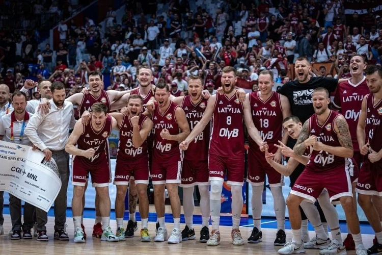 接著,你還要看看對手的世界排名,據此加上第三個項,公式為1.5*(世界排名平均數-對手排名),這蘊含著擊敗越強對手獲益越多、輸給越弱對手懲罰越重的理念。2023年狀態強勁的拉脫維亞,曾短期內連續掀翻西班牙、法國、希臘在內的多支排名高于自己的強隊,世界杯正賽上更是大勝巴西立陶宛喜提第五,藉此排名從29名暴漲到前八。