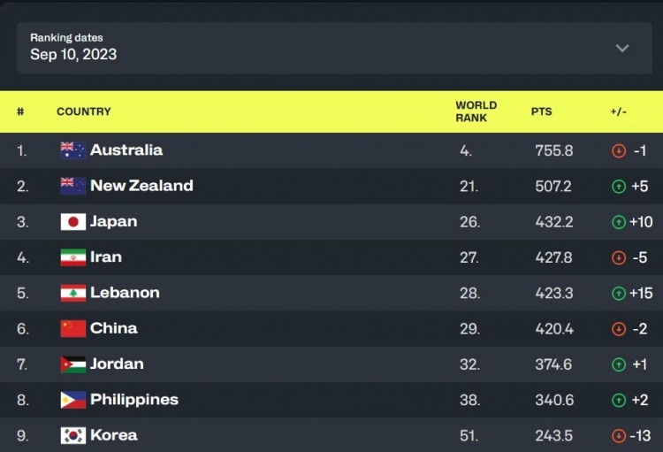 2023年9月,克羅地亞再掉五個名次,排名正式落到中國身后,他們在那個被新納入統計的窗口期合計輸給瑞典荷蘭烏克蘭55分,令人無語。