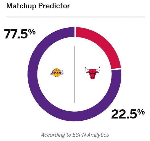 此前被公牛虐31分&明日再戰!ESPN預測勝率:湖人高達77.5%