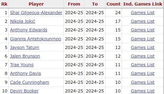 行走的得分機(jī)器!亞歷山大本賽季第25場35+ 其余人最多17次