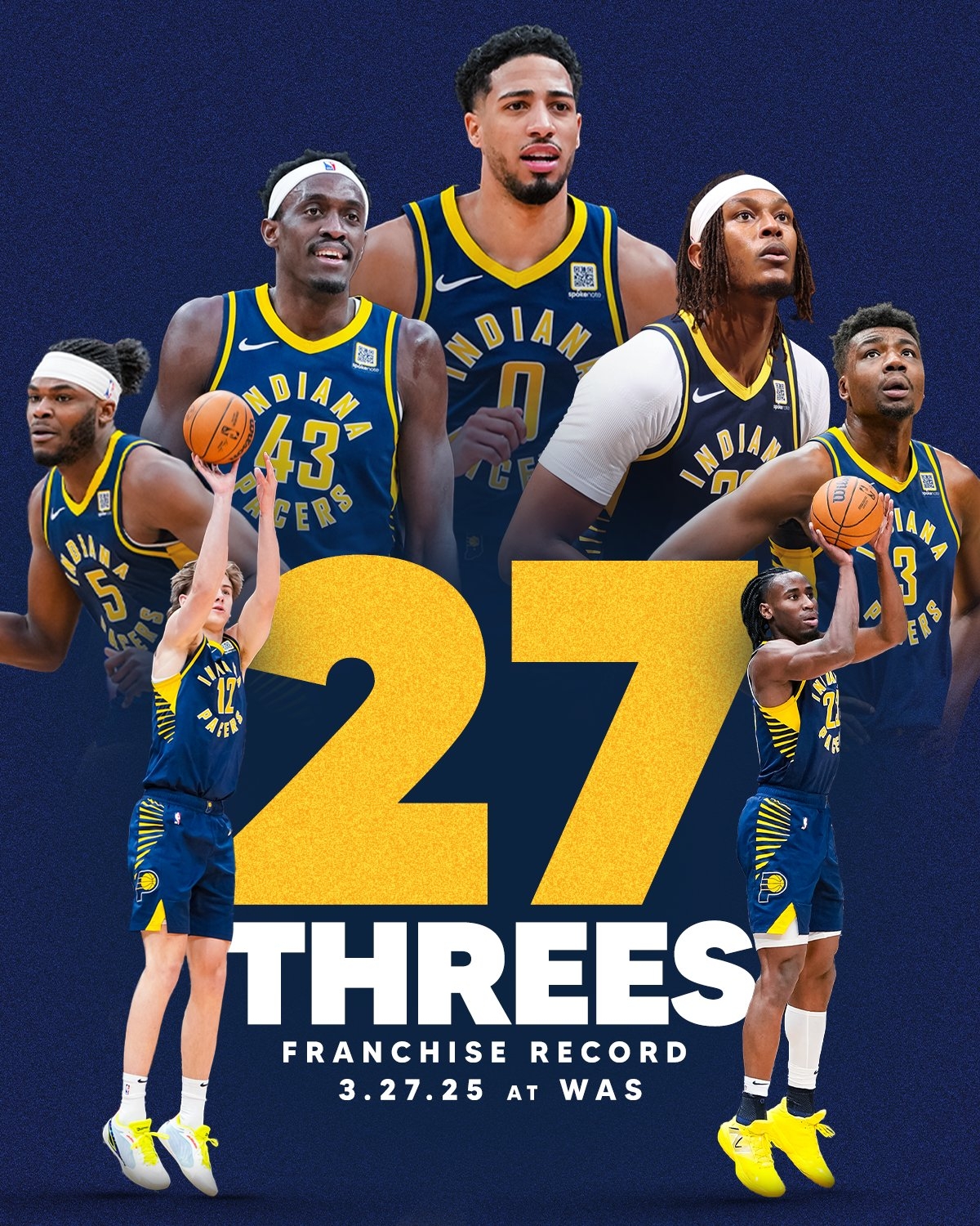 萬箭齊發!步行者今天射落27記三分 刷新隊史紀錄