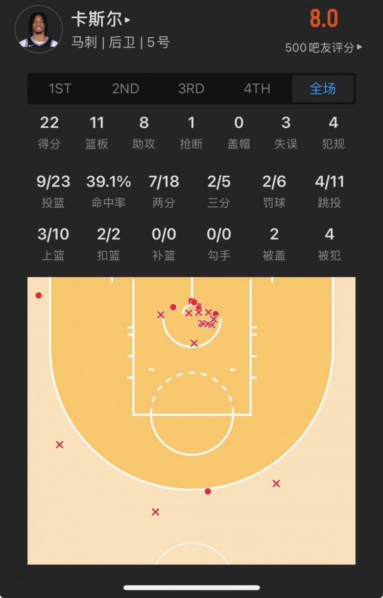 馬刺4號秀 斯蒂芬-卡斯爾 登場31.9分鐘