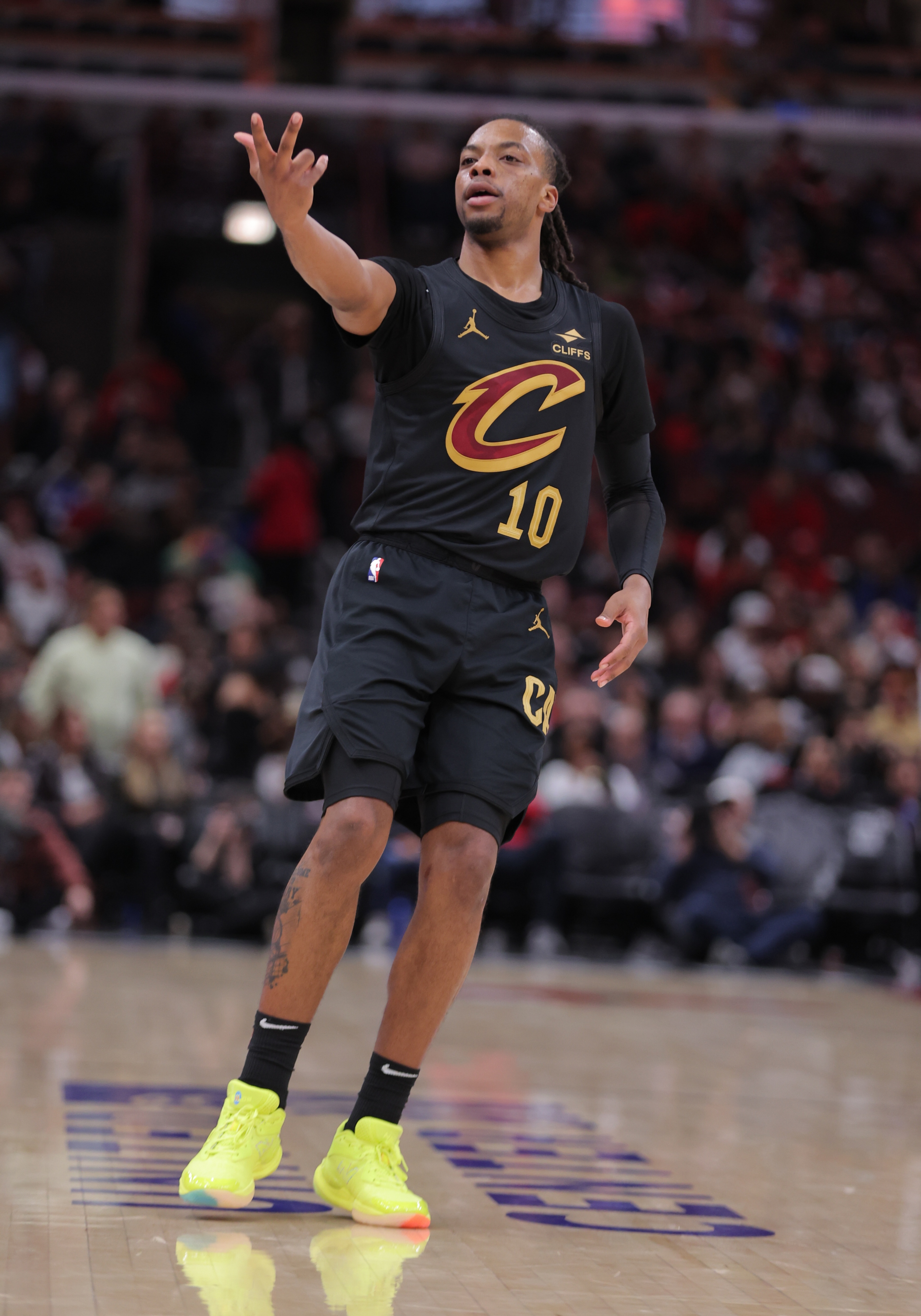 去年,挫折再次襲來。一系列傷病困擾接踵而至:包括頭部受傷、腰部疼痛反復發作,以及下巴骨折不得不接受手術。加蘭缺席了19場比賽,在下巴被固定期間,他只能通過吸管進食。在場外,他還經歷了祖母的離世,承受著巨大的悲痛。即便如此,他依然能場均貢獻18.0分6.5次助攻,三分球命中率37.1%,幫助騎士隊打進了分區半決賽。