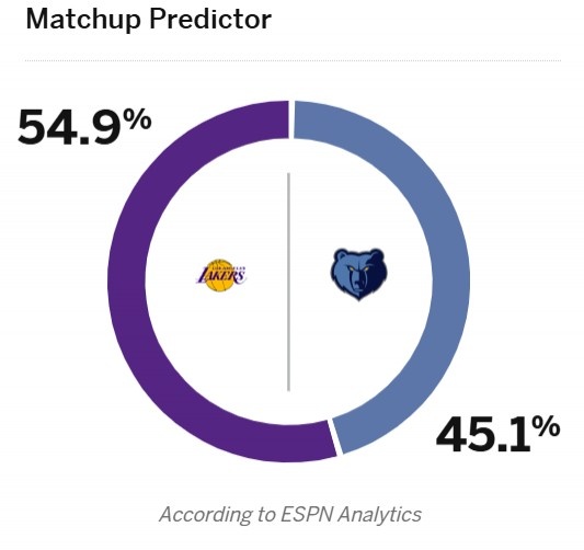 卡位戰/老詹里程碑/灰熊換帥!ESPN預測勝率:湖人54.9%微占優勢