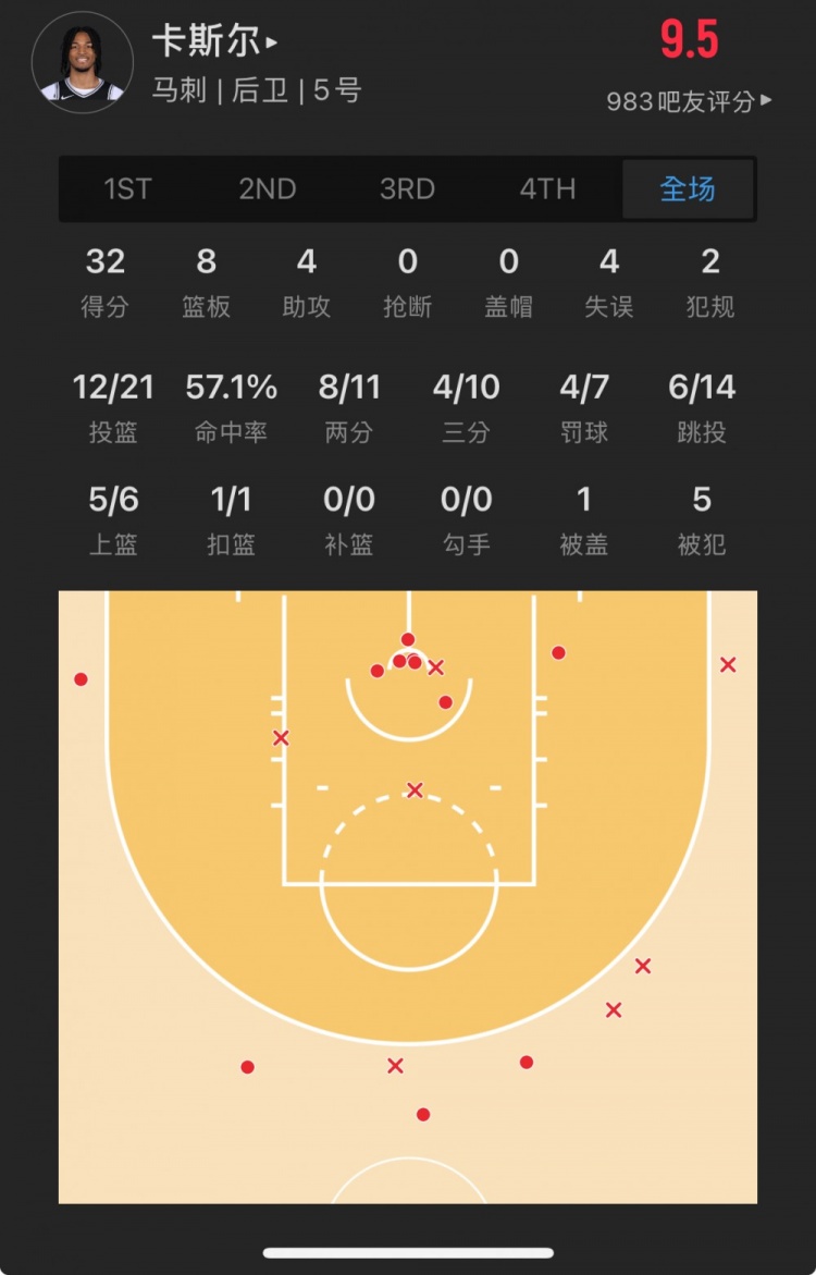 馬刺4號秀 斯蒂芬-卡斯爾 登場31.9分鐘