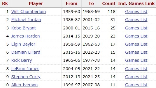 據統計,這是哈登生涯第24場常規賽50+,歷史第4多,僅次于張伯倫(118)、喬丹(31)、科比(25)。