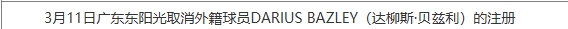 03月11日訊 CBA官網更新外籍球員注冊名單,廣東取消貝茲利的注冊,重新注冊吉倫沃特。