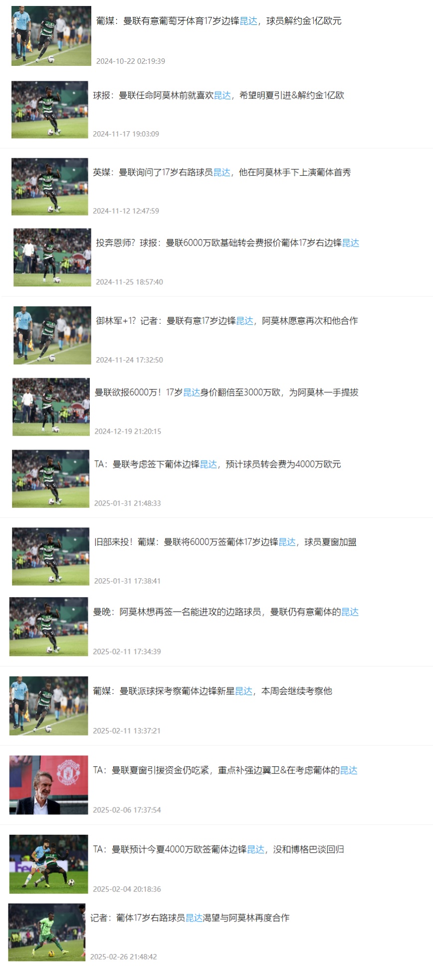 昆達(dá)2019年加盟葡萄牙體育青訓(xùn),去年夏天被阿莫林提拔至葡體一線隊(duì)。從去年10月開始,就持續(xù)有曼聯(lián)打算簽下昆達(dá)的傳聞。