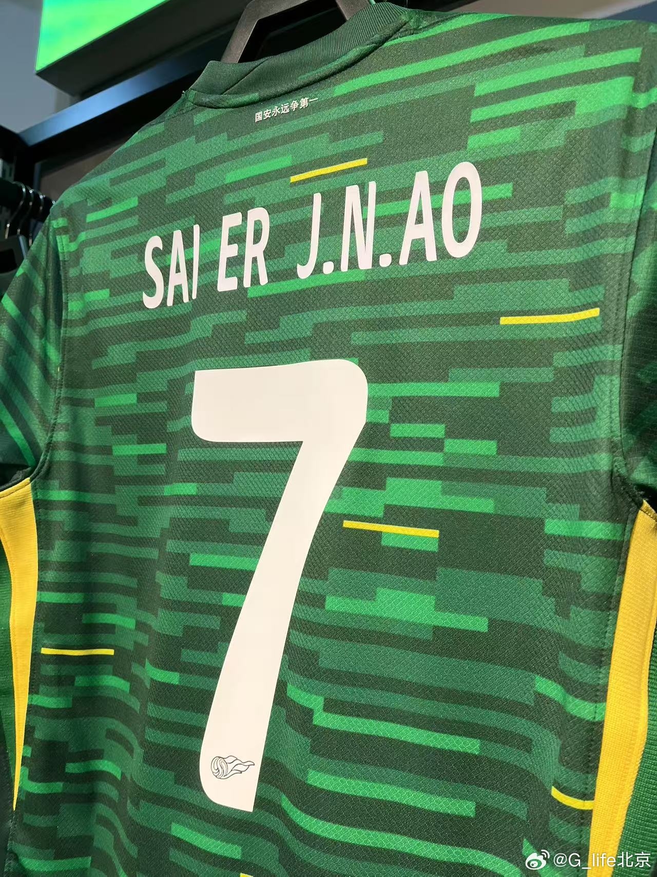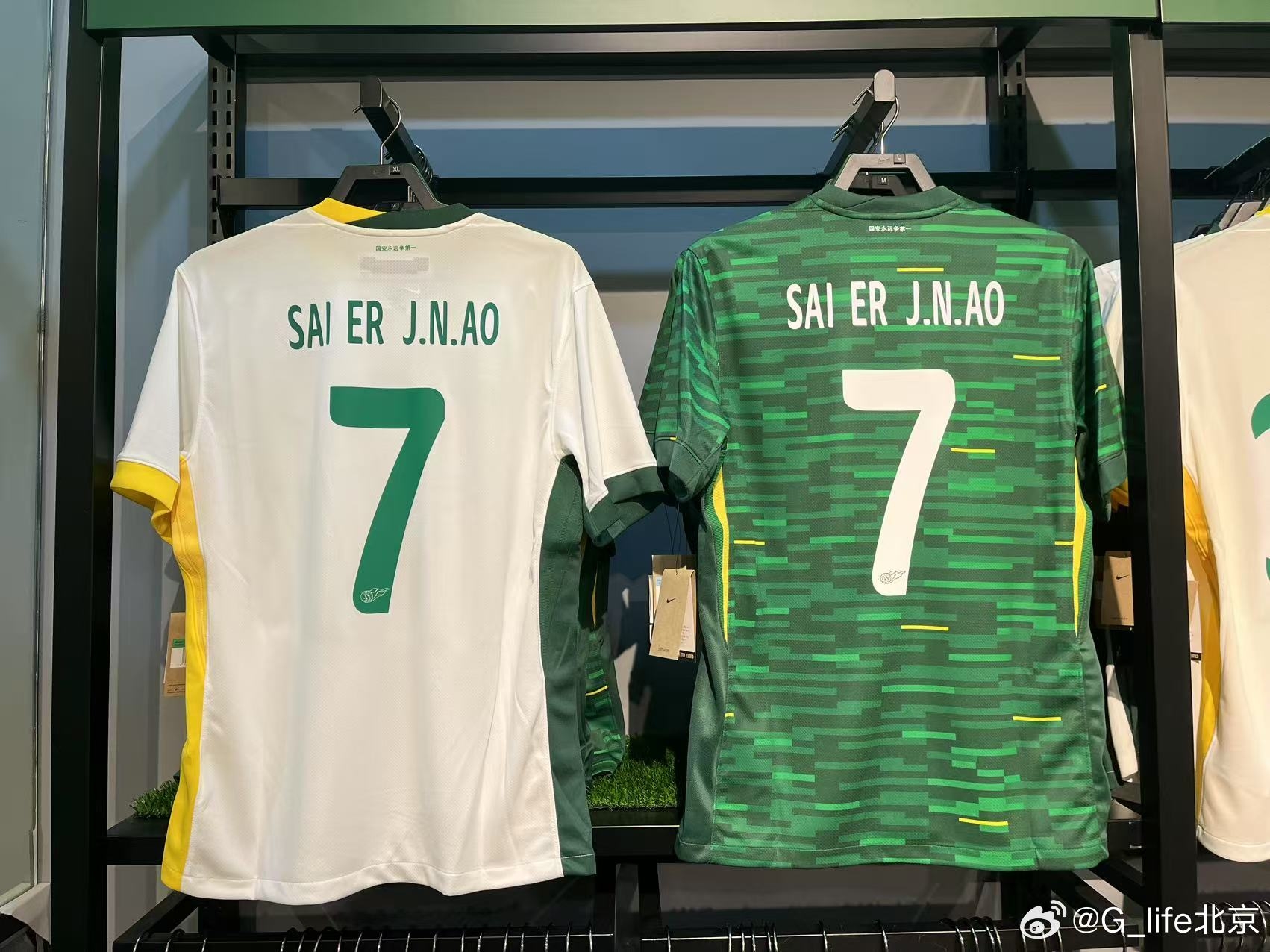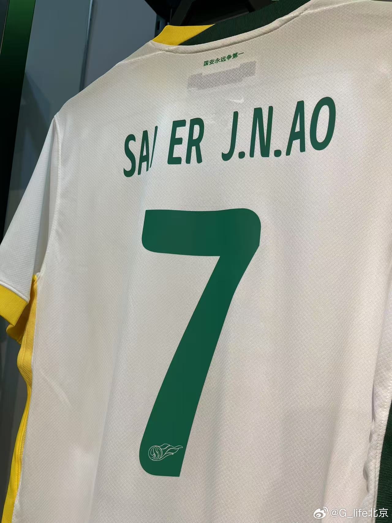03月16日訊 國安商店上架塞爾吉尼奧的7號球衣,印號是“SAI ER J. N. AO”。