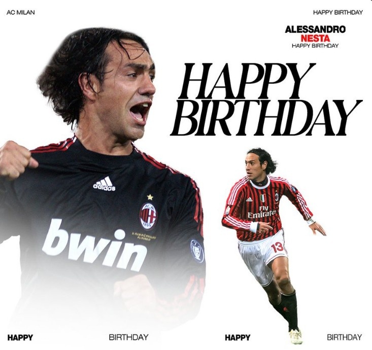 3月19日訊 今天是意大利傳奇后衛內斯塔49歲生日,AC米蘭官推也曬照為其送上生日祝福。
