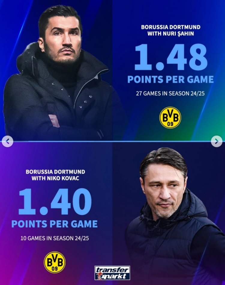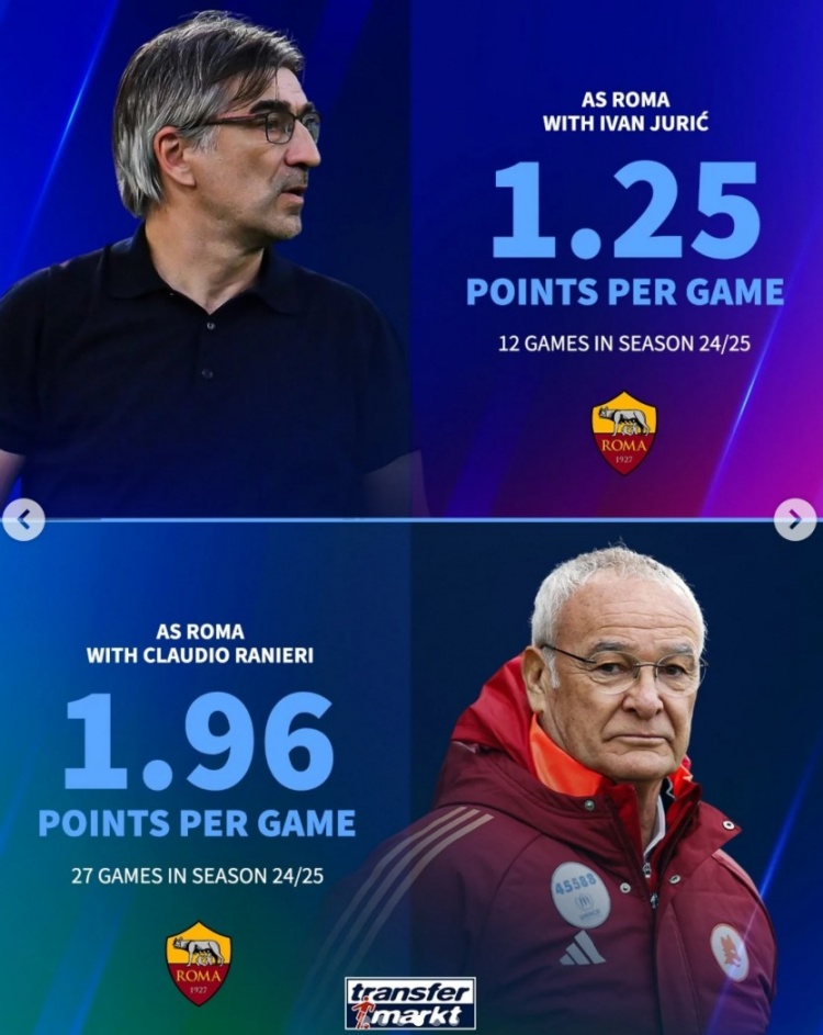 3月19日訊 德轉盤點了在本賽季中期更換主帥的6支球隊場均積分變化情況,其中曼聯、羅馬、里昂有所提升,而AC米蘭、多特、西漢姆則有所下降。以下為本賽季場均積分具體情況: