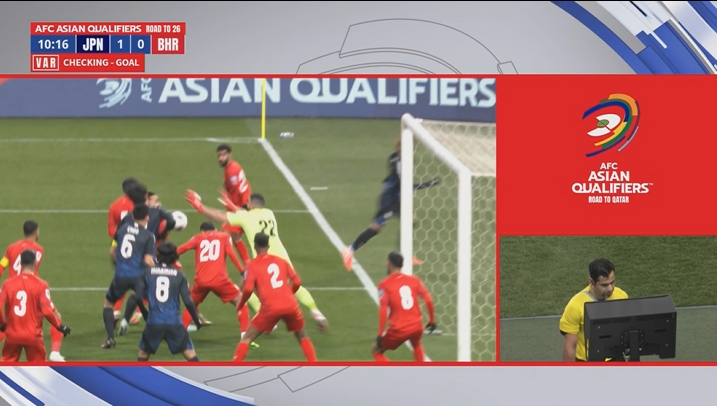 03月20日訊 世預(yù)賽亞洲區(qū)第三階段C組第7輪,日本vs巴林,比賽第9分鐘,日本隊(duì)角球開出,遠(yuǎn)藤航亂戰(zhàn)破門,但裁判在場邊觀看VAR后判定上田綺世手球在先,進(jìn)球無效。