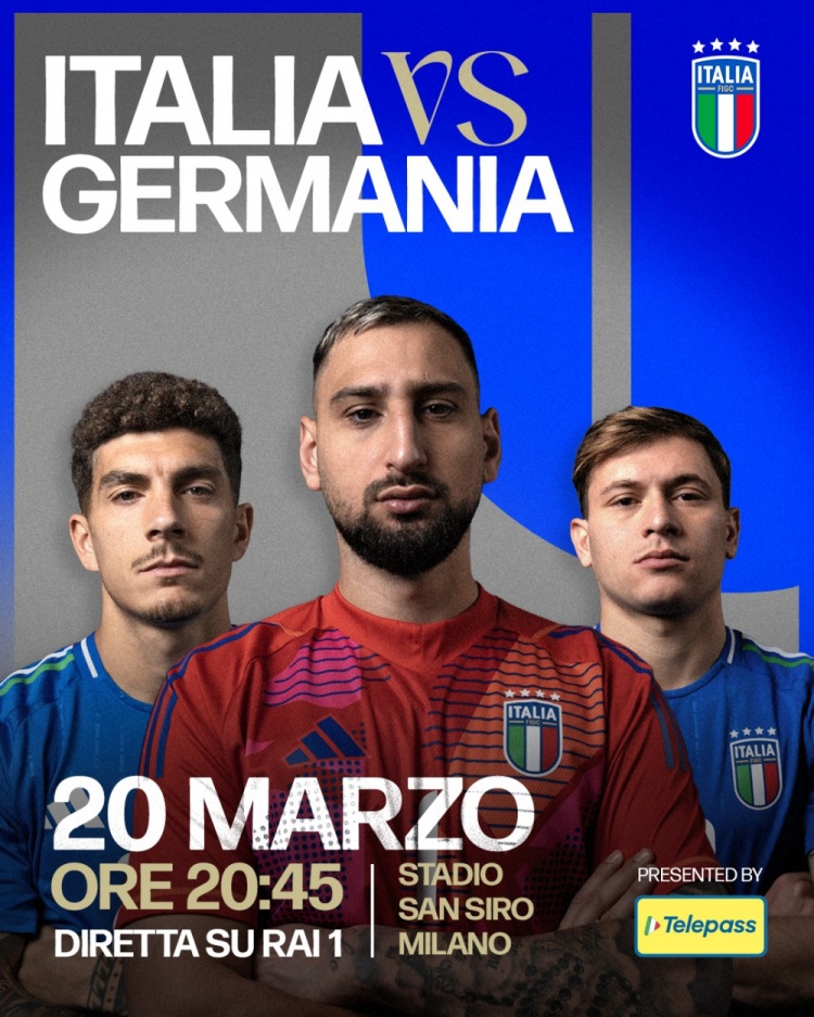 意大利隊官方社媒曬出了為此役制作的海報,多納魯馬、迪洛倫佐、巴雷拉出鏡,海報上寫有比賽的時間和場地圣西羅球場。