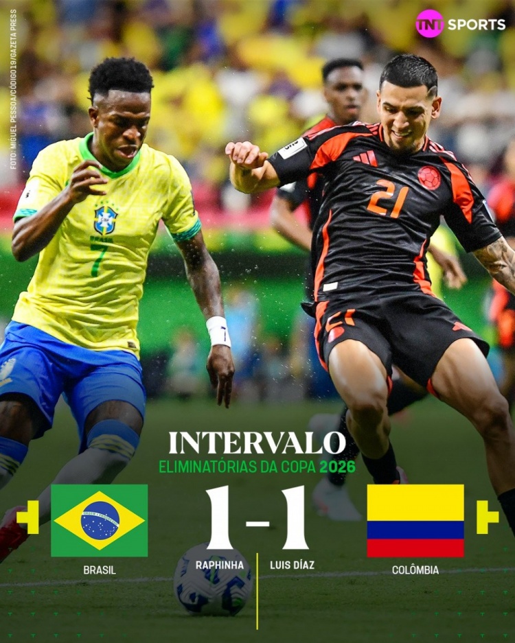 3月21日訊 北京時間世預賽南美區第13輪,巴西主場對陣哥倫比亞。上半場,維尼修斯開場3分鐘造點,拉菲尼亞點射破門,迪亞斯扳平比分。上半場巴西1-1哥倫比亞。