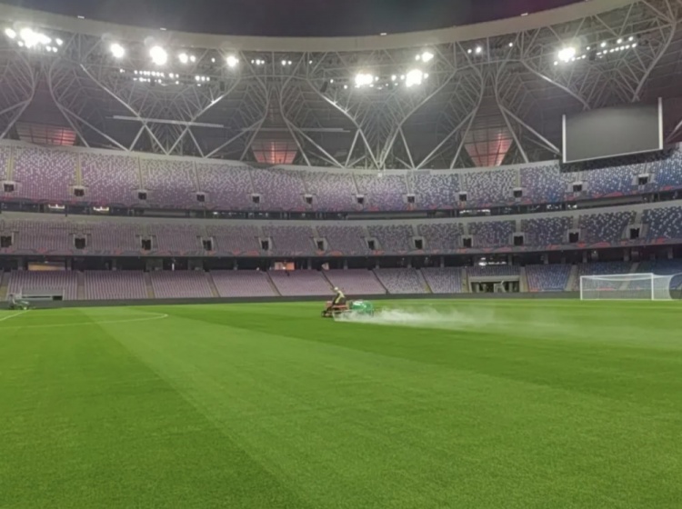 草坪養(yǎng)護(hù)專家李龍保介紹,根據(jù)本階段世預(yù)賽競賽要求,整個(gè)球場的草坪修剪高度要嚴(yán)格控制在25mm,草坪的基礎(chǔ)平整度極為嚴(yán)格,3米內(nèi)的高差必須控制在5mm以內(nèi),整個(gè)場地的坡度差要在千分之三以內(nèi)。“我們用的高精度北斗導(dǎo)航精細(xì)平地機(jī)控制平整度,能夠根據(jù)導(dǎo)航自動(dòng)找平調(diào)平種植層平整。”