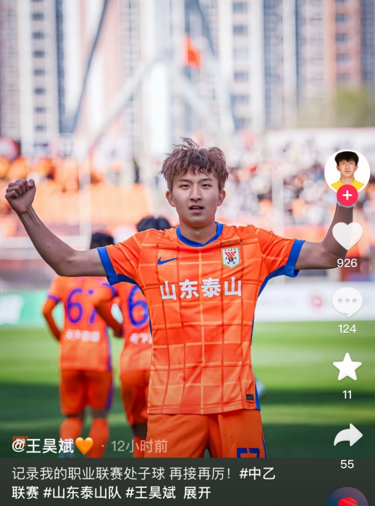 3月23日訊 泰山B隊球員王昊斌更新社媒,記錄了自己職業生涯的處子進球。
