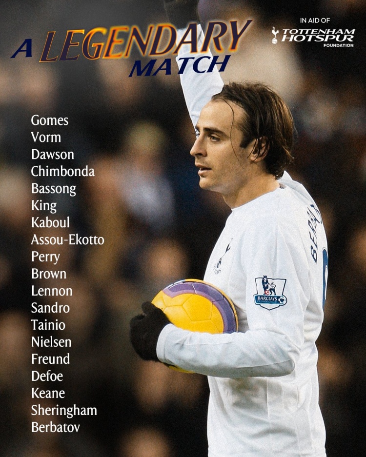 3月23日訊 北京時間今天晚上22點,熱刺傳奇隊將對陣米蘭榮耀隊,熱刺公布了傳奇賽的球員名單,貝爾巴托夫、謝林漢姆、迪福、羅比-基恩在列。