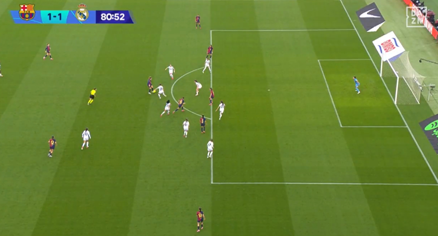 在比賽第81分鐘,巴薩女足一粒進球被吹無效引發了爭議,而女足聯賽中并無VAR,比分仍為1-1,隨后皇馬比賽尾聲連進兩球,最終比分定格為1-3。