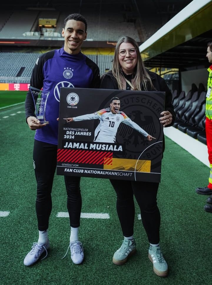 此外,在去年歐國聯德國7-0波黑的比賽中,穆西亞拉當選了全場最佳球員,他在昨天一起領取了這兩座獎杯。