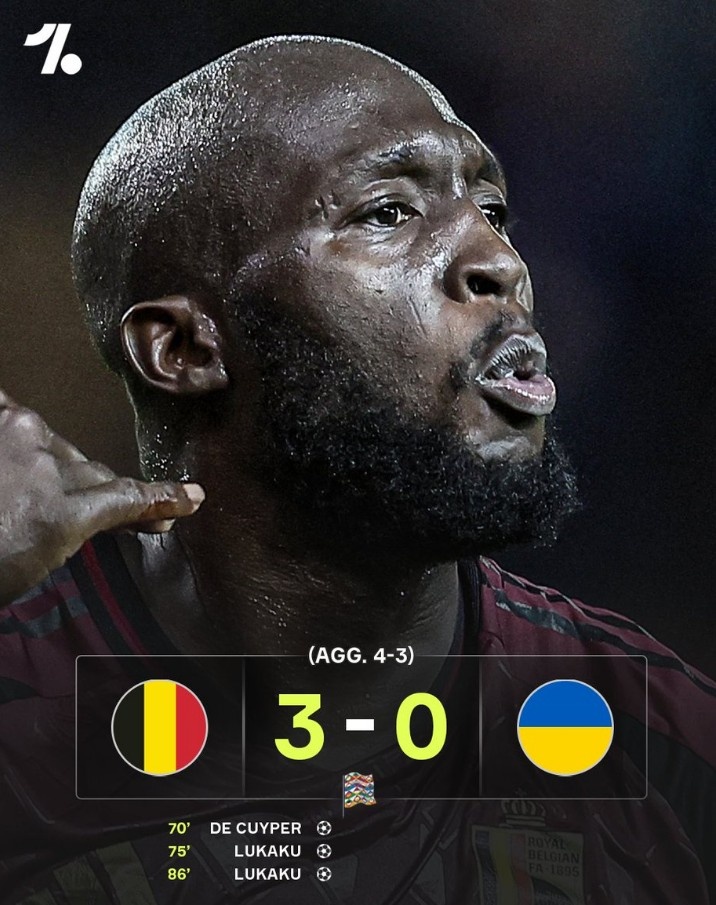 歐國聯升級賽次回合比利時3-0擊敗烏克蘭,盧卡庫梅開二度?