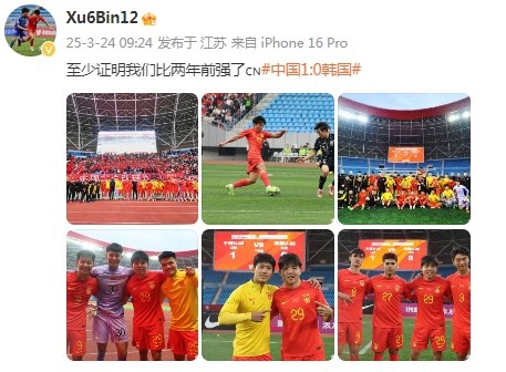 3月24日訊 U22國(guó)足球員徐彬更新社媒,慶祝球隊(duì)擊敗韓國(guó)。
