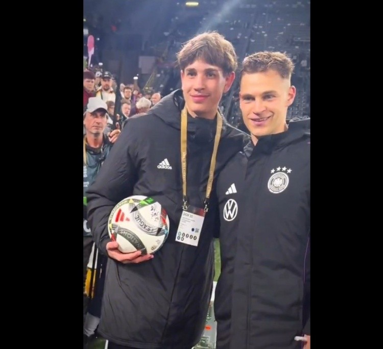 值得一提的是,現(xiàn)場的德國球童第一時(shí)間將足球拋給基米希,在很大程度上幫助實(shí)現(xiàn)了這一進(jìn)球。基米希也在賽后找到這位球童,為其送上簽名足球并合影鼓勵(lì)。