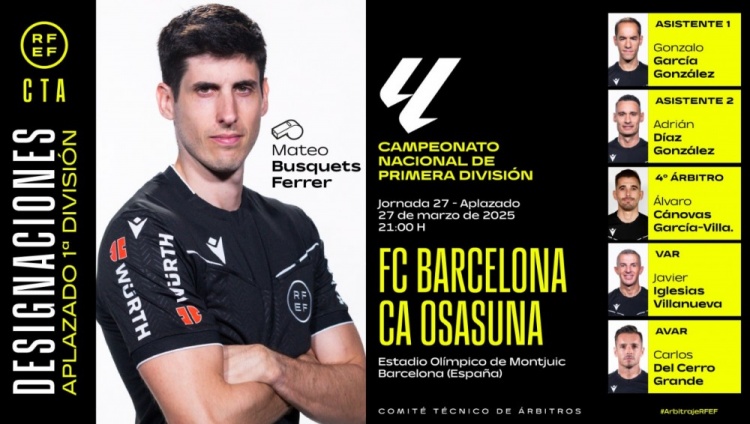 3月25日訊 北京時間328日凌晨4:002024-25賽季西甲第27輪補賽,巴塞羅那將迎戰奧薩蘇納。賽前,西班牙足協官方公布了本場比賽裁判組,費雷爾執法。