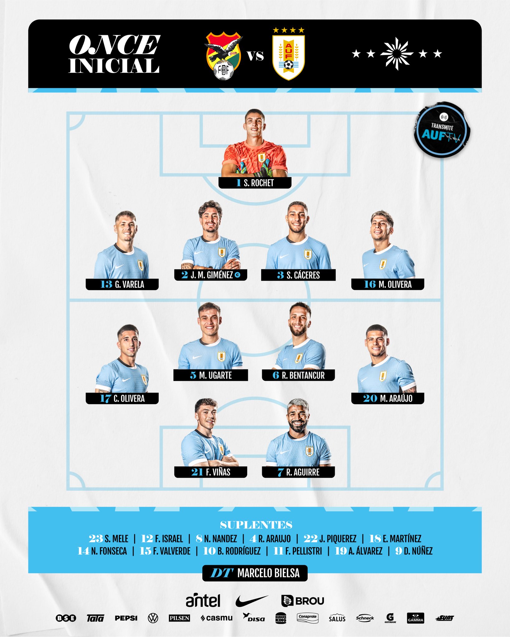 烏拉圭vs玻利維亞首發:巴爾韋德&阿勞霍&努涅斯替補,烏加特先發?