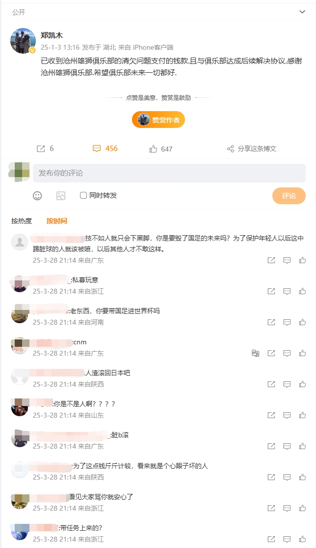 踢傷王鈺棟,鄭凱木微博被沖數百條:毒瘤、印尼給你多少錢?